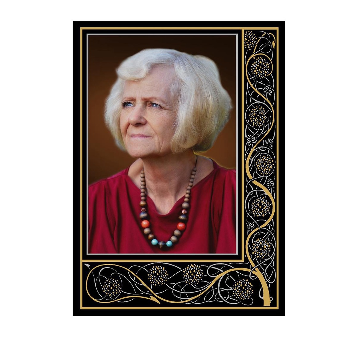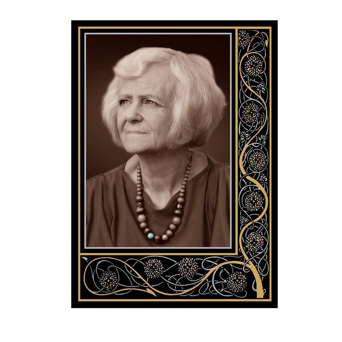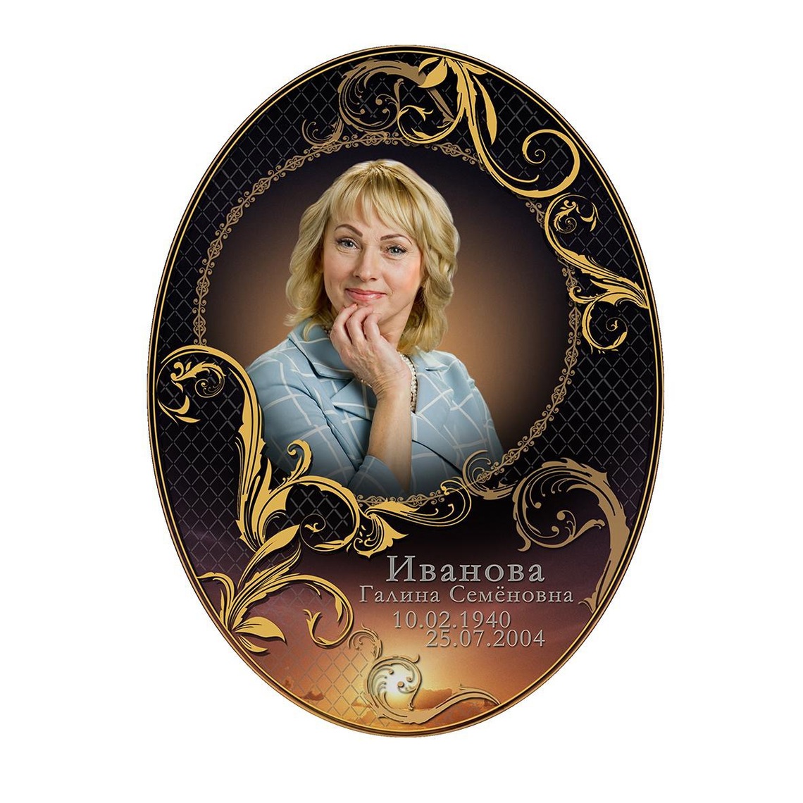 ✔ Luksus detailides – kulla- ja hõbedasisaldusega värvide kasutamine annab portreele väärika sära, muutes selle mälestuskompositsiooni keskseks elemendiks.