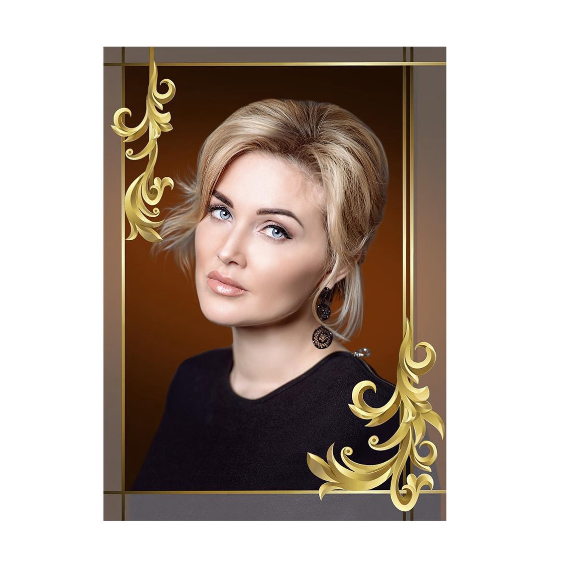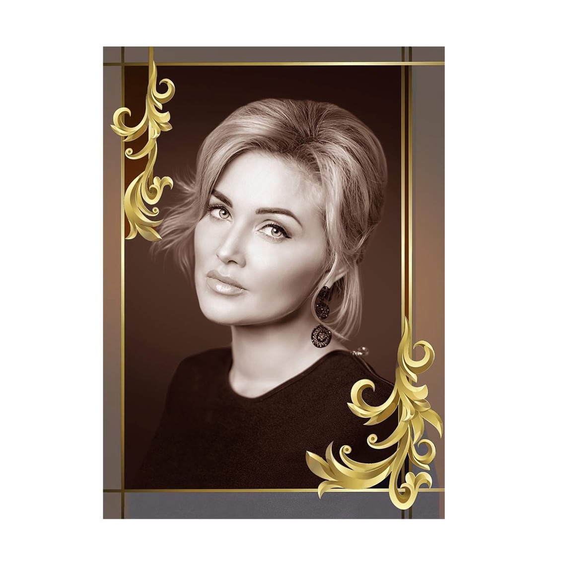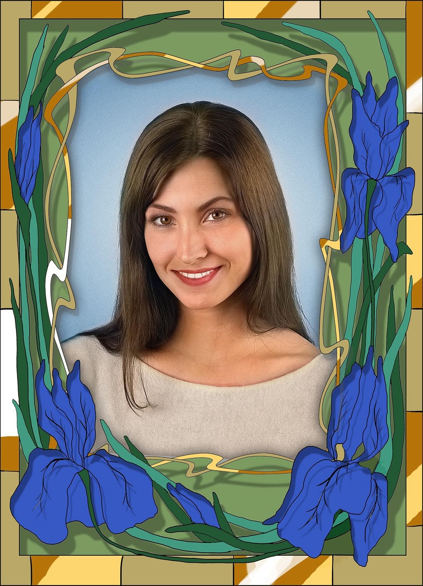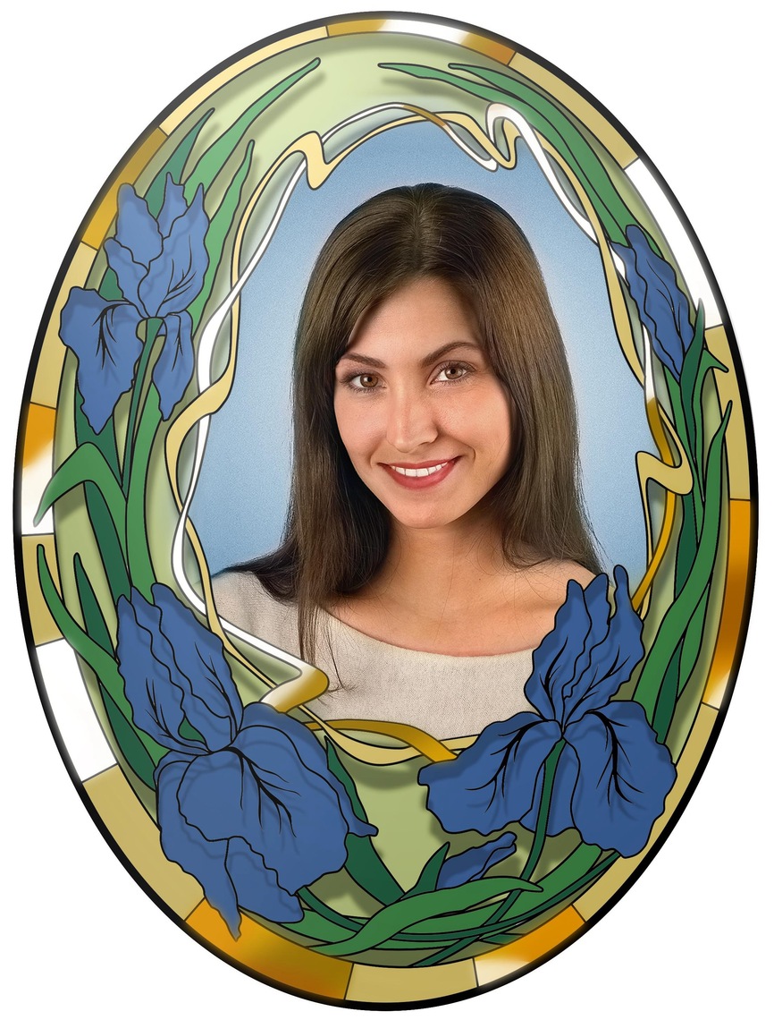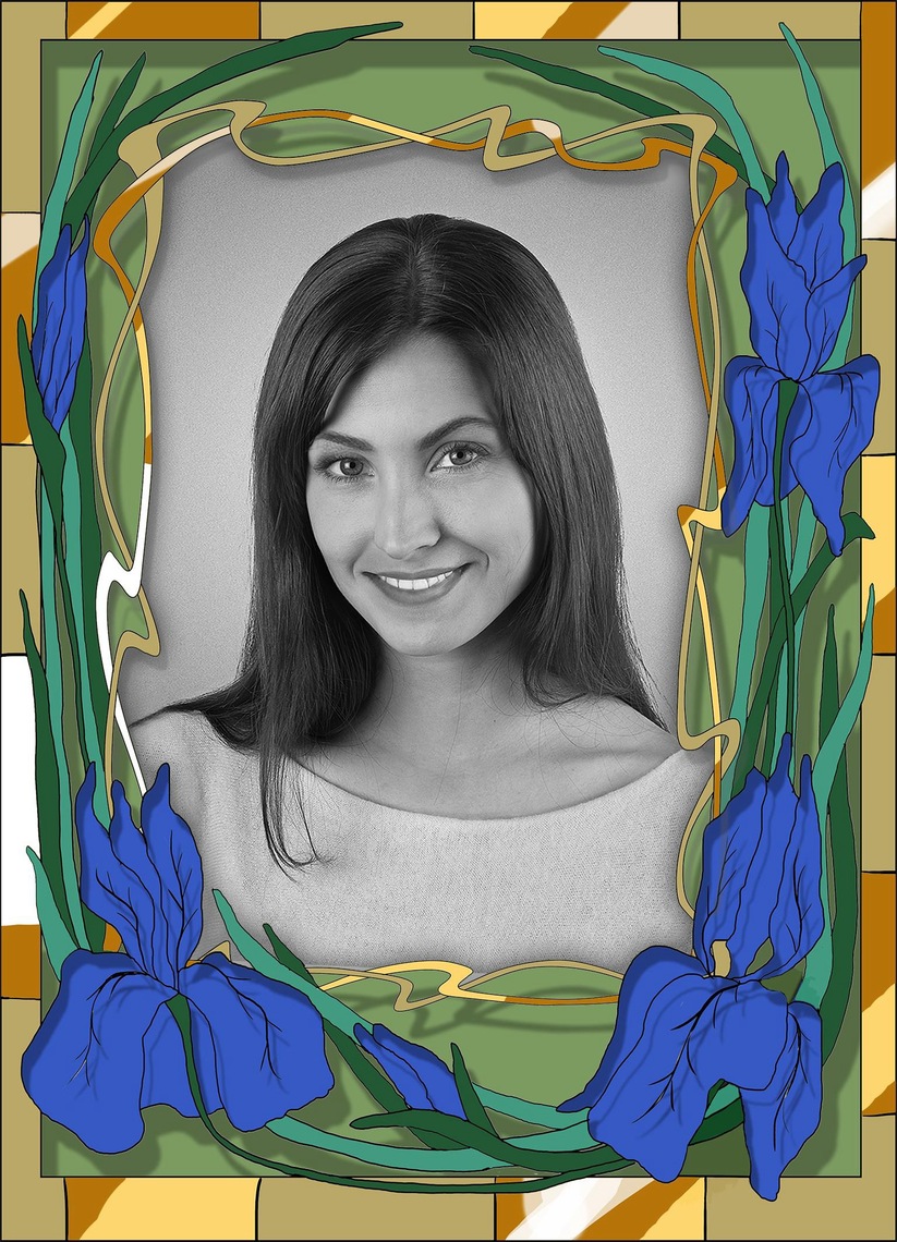 ✔ Valguse ja värvide mäng – läbipaistvad ornamendi fragmendid lisavad portreele kergust ja graatsiat, muutuva valguse korral omandab kujutis uusi varjundeid.