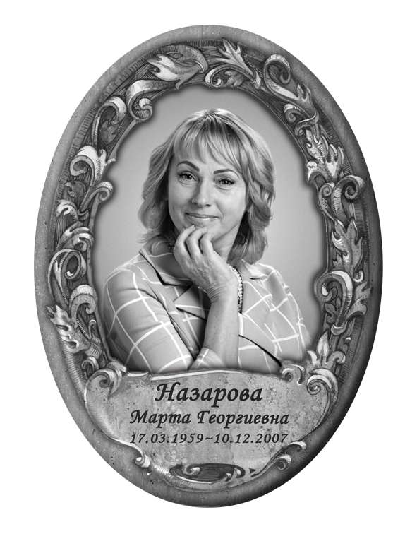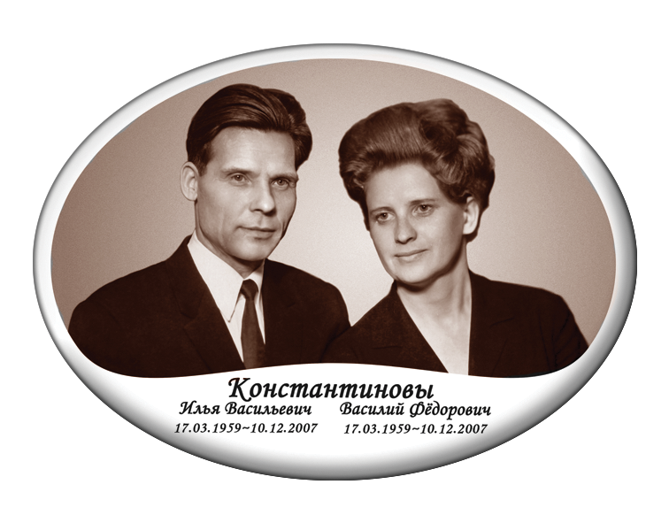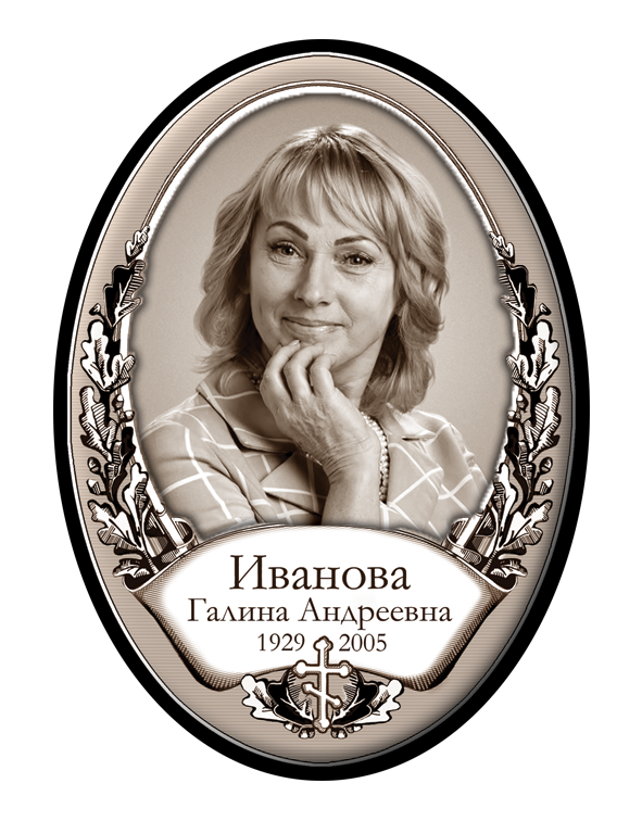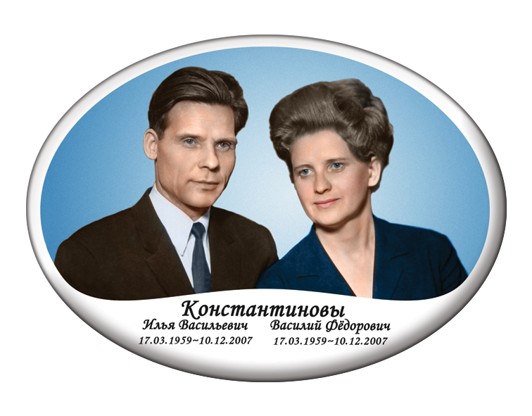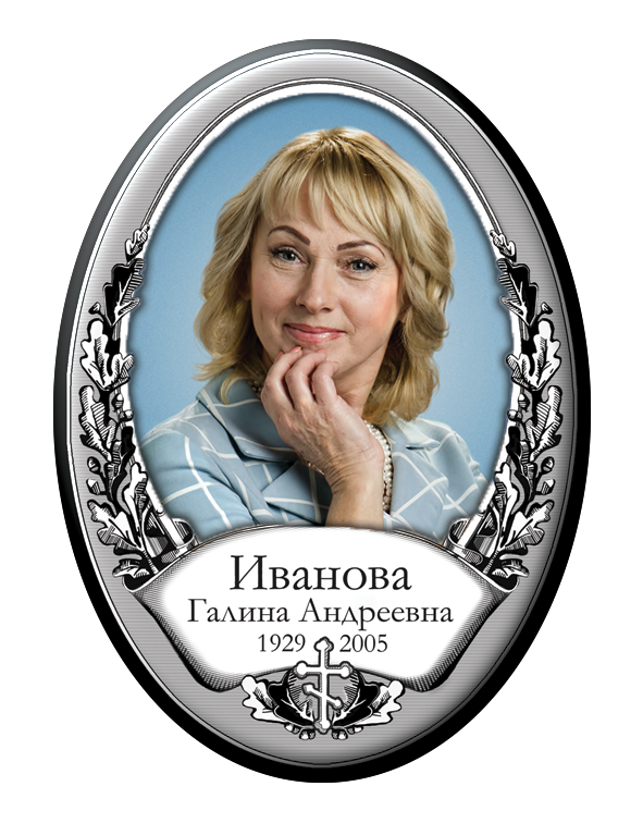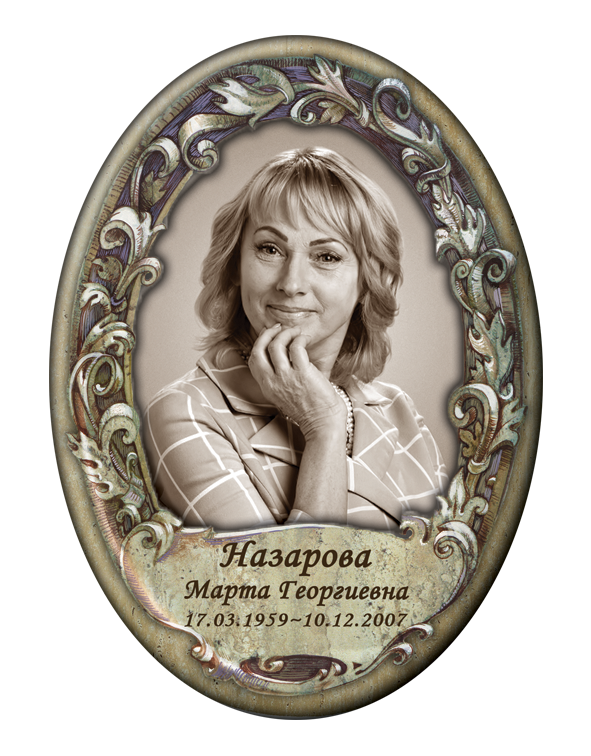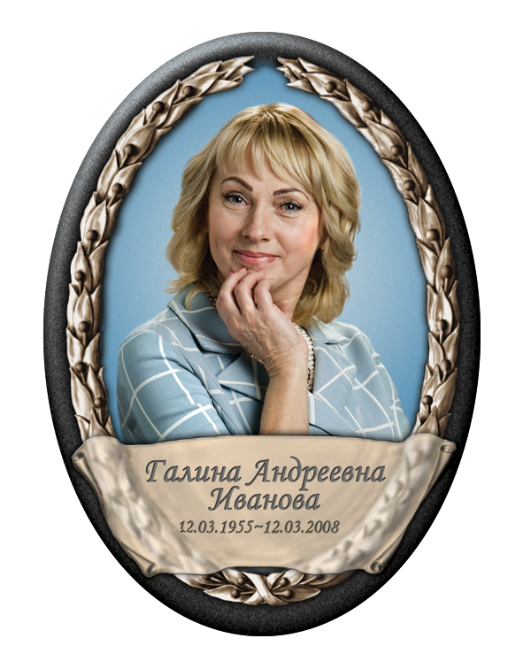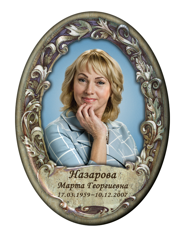 Valmistame hauaplaadi portreesid keraamilistel, portselanist, keraamilisel graniidil ja metallist ovaalsetel toorikutel, pakkudes laia valikut värvilahendusi:✔ Värvilised – erksad ja loomulikud toonid.